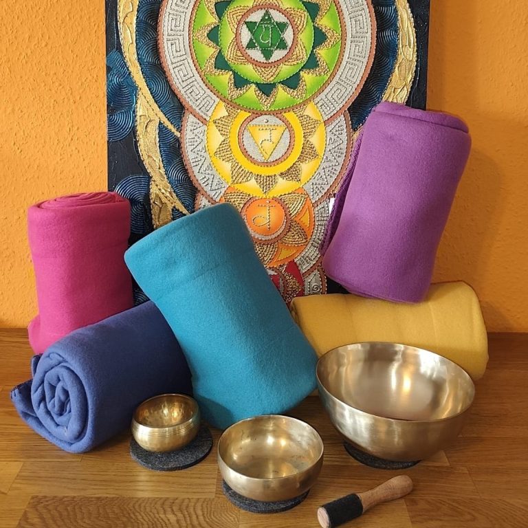 Neben den ruhigen Yin Übungen, die überwiegend sitzend oder liegend durchgeführt werden, arbeite ich für die spirituelle Entspannung noch begleitend mit Massage (falls gewünscht), Klangschalen und Musikunterstützung.